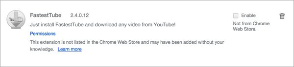 Chrome for Mac OS X starts to block FastestTube to prevent downloading from Youtube. If this happens, you will see the following - FastestTube is installed, but can not be enabled.
